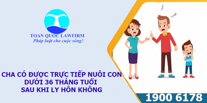 Chào bạn, Luật Toàn Quốc cảm ơn bạn đã tin tưởng và gửi câu hỏi cha có được trực tiếp nuôi con dưới 36 tháng tuổi sau khi ly hôn không, chúng tôi xin đưa ra quan điểm tư vấn về cha có được trực tiếp nuôi con dưới 36 tháng tuổi sau khi ly hôn không như sau:
